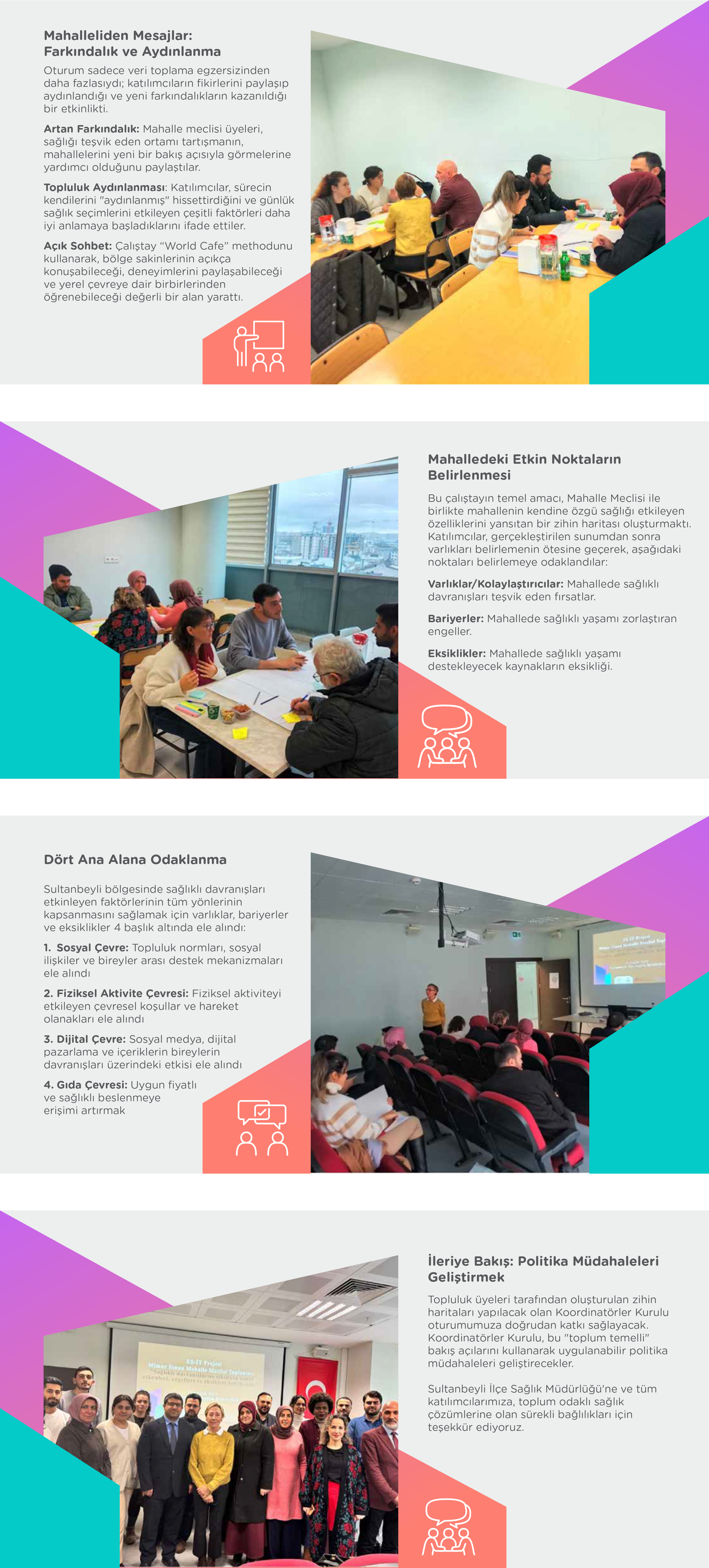 IM-EQ Türkiye Ekibi, İstanbul Sultanbeyli ilçesinde 2. Çalışma Paketinin ilk çalıştayını başarıyla tamamladı. Daha öncesinde oluşturulan sağlık varlıklarının haritasına dayanarak, bu oturumda Mimar Sinan Mahallesi'nde sağlığı iyileştirmek için belirli önemli noktaların (varlıklar, eksikler, bariyerler) belirlenmesine odaklanıldı.